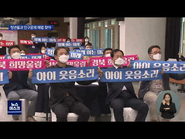 ◀ANC▶ 경북은 빠르게 늙어가면서 심각한 소멸위험에 처해 있는데요, 경상북도가 인구 유출과 저출산 극복의 핵심인 청년들과 함께 토론회를 갖고수요자 중심의 해법 찾기에 나섰습니다. 김건엽 기자가 보도합니다. ◀END▶ ◀VCR▶ [C/G]경북의 청년인구 비중은 22.5%로 전국에서 두 번째로 낮은 반면 고령인구 비중...