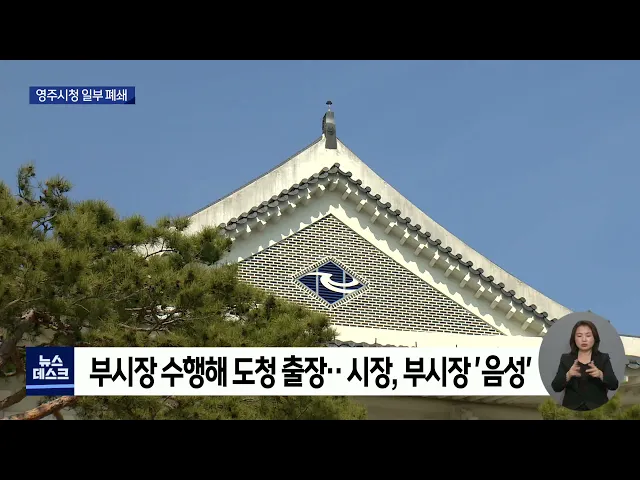 ◀ANC▶경북도 상황이 좋지 않습니다.먼저 경북 북부지역입니다.영주시청 공무원 2명이 코로나19 확진 판정을 받아 영주시청 일부가 폐쇄됐습니다.엄지원 기자입니다. ◀END▶ ◀VCR▶영주시청 본관 2층.직원들이 출입 금지 테이프를 부착해사무실을 폐쇄합니다.같은 층에서 확진자 2명이 나왔기 때문입니다.친인척 관...