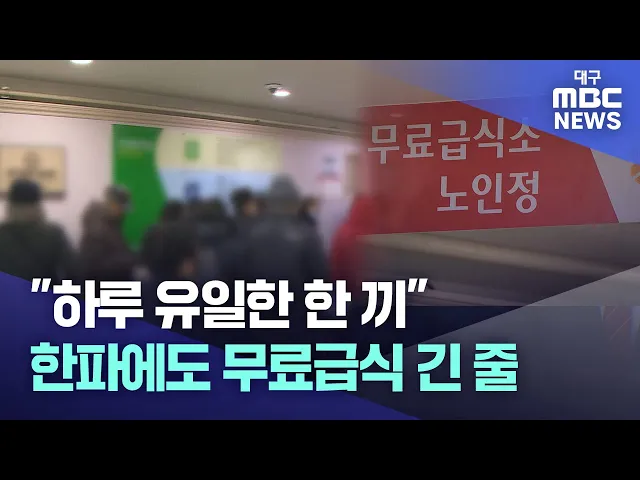◀앵커▶2월 12일부터는 한파가 조금 누그러지지만, 앞서 2주간은 체감온도가 영하 20도까지 떨어지면서 추위가 절정에 달했는데요.매서운 추위에도 아랑곳하지 않고 긴 줄을 서는 곳이 있습니다.무료 급식소에 엄지원 기자가 다녀왔습니다. ◀기자▶30년째 무료 급식소를 운영 중인 안동시 종합사회복지관. 오전 11시 배식 시...