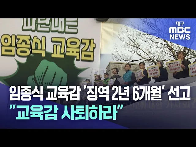 ◀앵커▶7년 전 교육감 선거 과정에서 공무원을 선거에 동원하고, 선거캠프 관계자에게 선거운동 대가로 금전을 제공한 혐의로 재판에 넘겨진 임종식 경북교육감에게 법원이 징역 2년 6개월을 선고했습니다.전교조 등 교육 관련 시민단체는 교육감으로서 자격이 없다며 즉각적인 사퇴를 촉구했습니다. 김기영 기자가 보도합니...