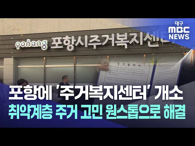◀앵커▶포항에 경북에서는 처음으로 주거 관련 정보를 제공하고, 맞춤형 상담을 해주는 '주거복지센터'가 문을 열었습니다.주거복지센터는 보금자리가 취약한 노인, 아동, 청년 등에게 공공임대주택 알선을 비롯해 집수리 지원 등을 전화 한 통으로 해결할 수 있습니다.김기영 기자가 보도합니다.◀기자▶포항 북구청 옆 중앙...