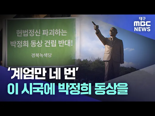 ◀앵커▶박정희 전 대통령의 대규모 동상이 경북도청 앞 천년숲에 들어섰습니다.경북에는 이미 구미와 포항, 경주 등 6곳에나 박 전 대통령 동상이 있는데, 이번에 또 한 번 동상이 건립된 겁니다.4번이나 비상계엄을 선포하며 민주주의를 파괴했다는 비판을 받는 박정희 전 대통령 동상을 하필 이 비상계엄 시국에 건립하면...