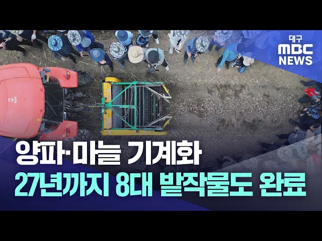 ◀앵커▶논농사에 비해 기계화가 더딘 밭농사 기계화가 본격 추진되면서 양파와 마늘은 파종부터 수확까지 기계화가 이뤄졌습니다.정부는 2027년까지 배추와 감자 등 주요 밭작물에 대한 기계화를 마무리할 계획입니다.김건엽 기자가 보도합니다. ◀기자▶육묘장에서 양파 모종이 햇살을 받으며 잘 자라고 있습니다. 물을 주는 ...