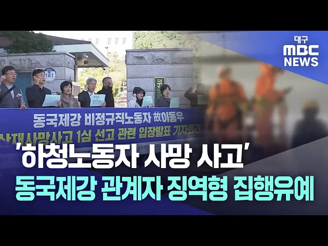 ◀앵커▶지난 2022년 동국제강 포항공장에서 30대 하청 노동자가 크레인을 수리하다 숨진 사건에 대한 1심 판결이 2년여 만에 나왔습니다.재판부는 안전조치가 이뤄지지 않아 일어난 사고라며 원청인 동국홀딩스와 하청업체 관계자들에게 징역형 집행유예를 선고했습니다.유족과 시민단체는 산업재해 방지에 아무런 영향도 주...