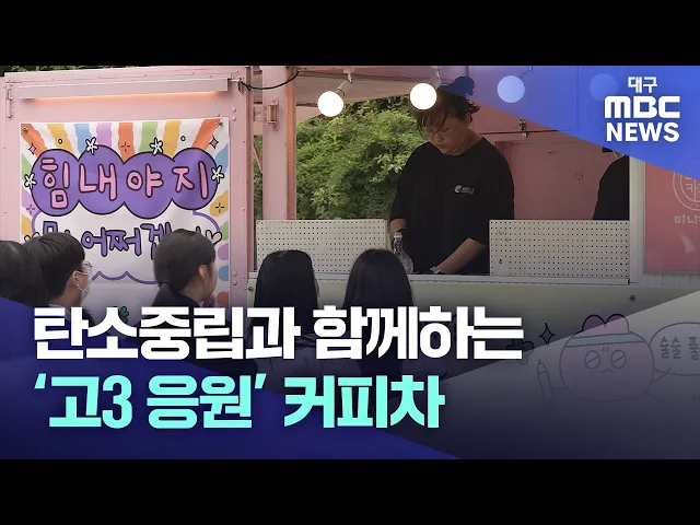 ◀앵커▶포항의 한 고등학교에선 수능을 앞둔 고3 학생들을 응원하는 커피차가 등장했습니다.탄소중립 실천도 함께 했다고 하는데요, 현장을 김해주 MBC 청소년 기자가 전합니다. ◀기자▶저는 지금 유성여자고등학교에 나와 있습니다.이곳에서는 그동안 고생한 학생들과 선생님들을 응원하기 위한 특별한 커피차 이벤트가 열렸...