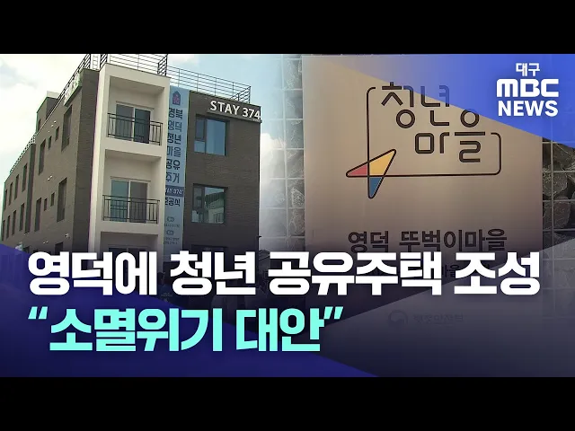 ◀앵커▶농어촌 시군마다 지방 소멸 위기가 심각한 과제로 부각되고 있습니다.이런 가운데, 영덕군이 인구 유입을 위한 해법으로 외지 청년들의 지역 정착을 도와 줄 공유 주택을 건설해 관심을 모으고 있습니다. 김형일 기자가 보도합니다. ◀기자▶영덕군이 20억 원을 들여 건설한 영덕군 영해면의 청년 마을 공유 주거 시설...