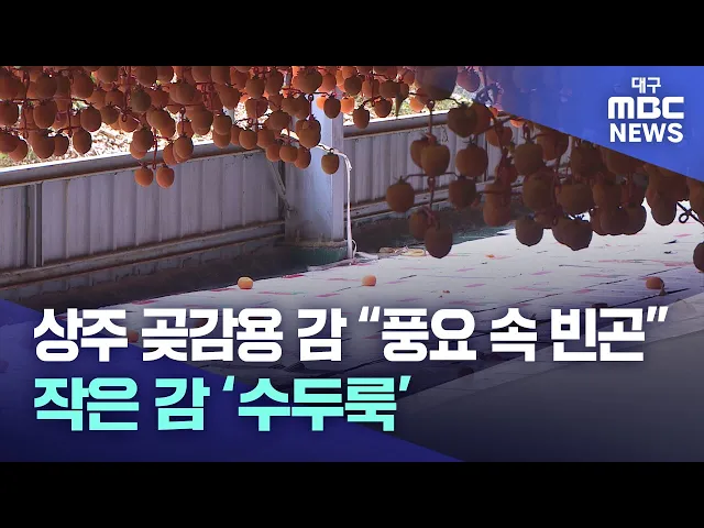 ◀앵커▶국내 최대 곶감 생산지 상주에서, 막바지 감 수확이 한창입니다.2024년은 2023년보다 감 생산량이 2배 가까이 급증했는데요.하지만 더운 날씨 탓에 크기가 작은 감이 많아 '풍요 속 빈곤'이라는 말까지 나오고 있습니다.김경철 기자◀기자▶푸른 잎사귀 사이로 어린아이 주먹만 한 주황빛 감이 주렁주렁 열렸습니다.둥...