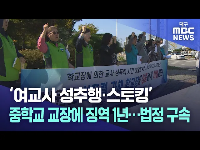 ◀앵커▶여교사를 반년 가까이 상습 성추행하고 스토킹한 혐의로 기소된 안동의 한 중학교 전직 교장이 1심에서 징역 1년을 선고받고 법정 구속됐습니다.앞서 검찰은 징역 6개월을 구형했지만, 법원은 죄질이 매우 불량하다며 이례적으로 검찰 구형보다 높은 실형을 선고했습니다.이도은 기자입니다.◀기자▶대구지법 안동지원 ...