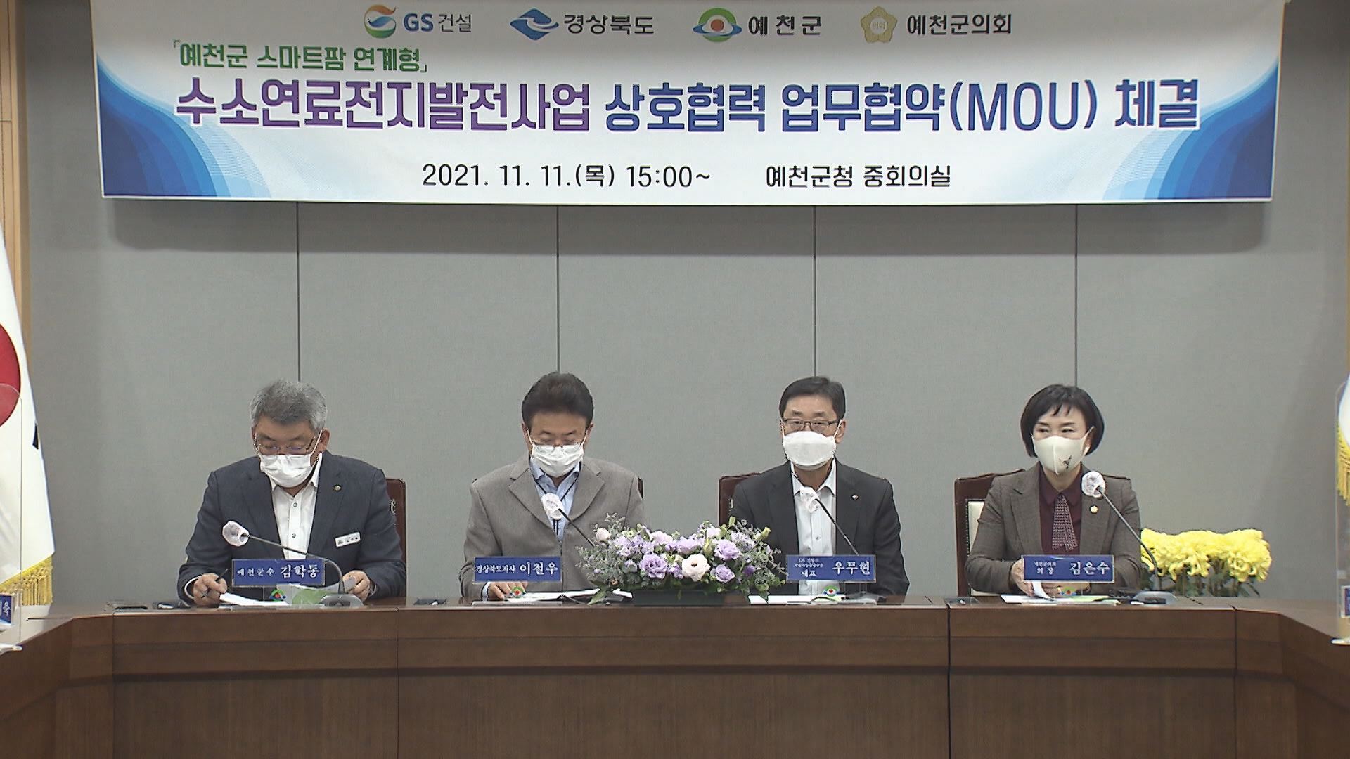 경북 예천에 스마트팜과 연계한 수소연료전지 발전소가 들어섭니다.경상북도와 예천군, GS 건설은 오늘 스마트팜 연계형 수소연료전지 발전사업을 위한 업무협약을 체결했습니다.협약에 따라 GS건설은 예천군 지보면 매창리에 방치돼 있던 4대강 정비사업 골재 적치장 터에 40메가와트급 수소연료전지 발전소를 짓고 발전소...