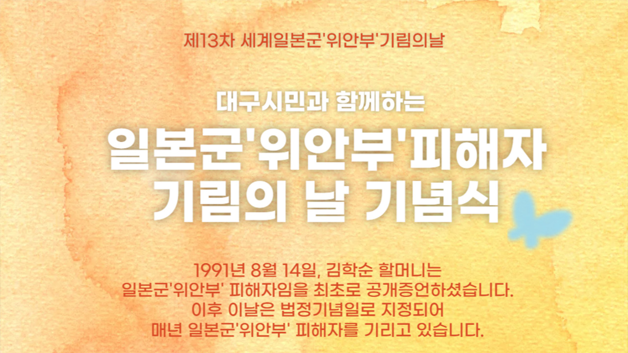 사진 제공 정신대할머니와함게하는시민모임(사)정신대할머니와함께하는시민모임이 8월 14일 일본군 위안부 피해자 기림의 날을 앞두고 8월 9일부터 대구에서 기림 주간을 운영합니다. 8월 9일 오전 11시 대구 중구 2·28기념중앙공원 소녀상 앞에서 기념식이 열립니다. 기념식에는 위안부 피해 생존자인 이용수 할머니가 참...