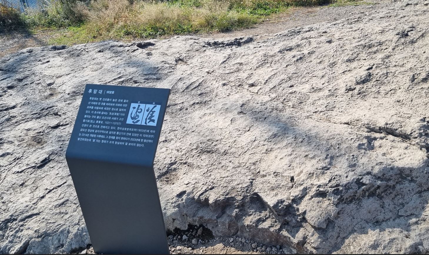 사진 제공 경북 구미시경북 구미시가 금오산 정상 후망대(候望臺) 바위 글자 앞에 안내판을 설치했습니다. 경북 구미시에 따르면 '후망대'는 1953년 한미상호방위조약 이후 금오산 정상에 설치된 군사 통신기지 구역에 있어 일반인 접근이 불가능했지만 2014년 개방되면서 대중에 알려지기 시작했습니다. '후망대' 글자는 ...