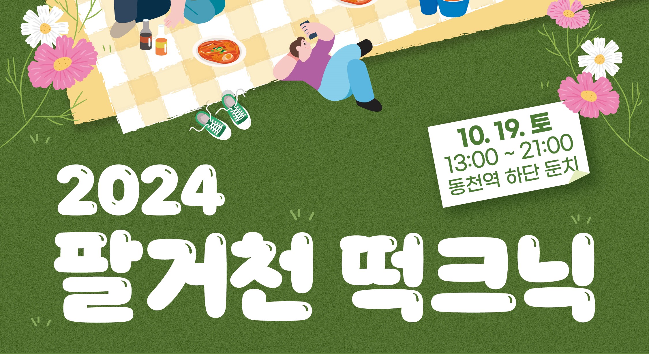 사진 제공 대구시 북구10월 19일 대구 북구 동거천역 아래 팔거천 둔치에서 '2024 팔거천 떡크닉' 행사가 열립니다. 사전 신청을 통해 선발된 미혼남녀 60명이 단체 소개팅을 하는 '떡볶이 시그널' 프로그램과 마술, 디제잉 공연 등이 진행됩니다.판매하는 떡볶이와 수제 맥주를 야외에서 즐길 수 있도록 돗자리와 텐트, 파...