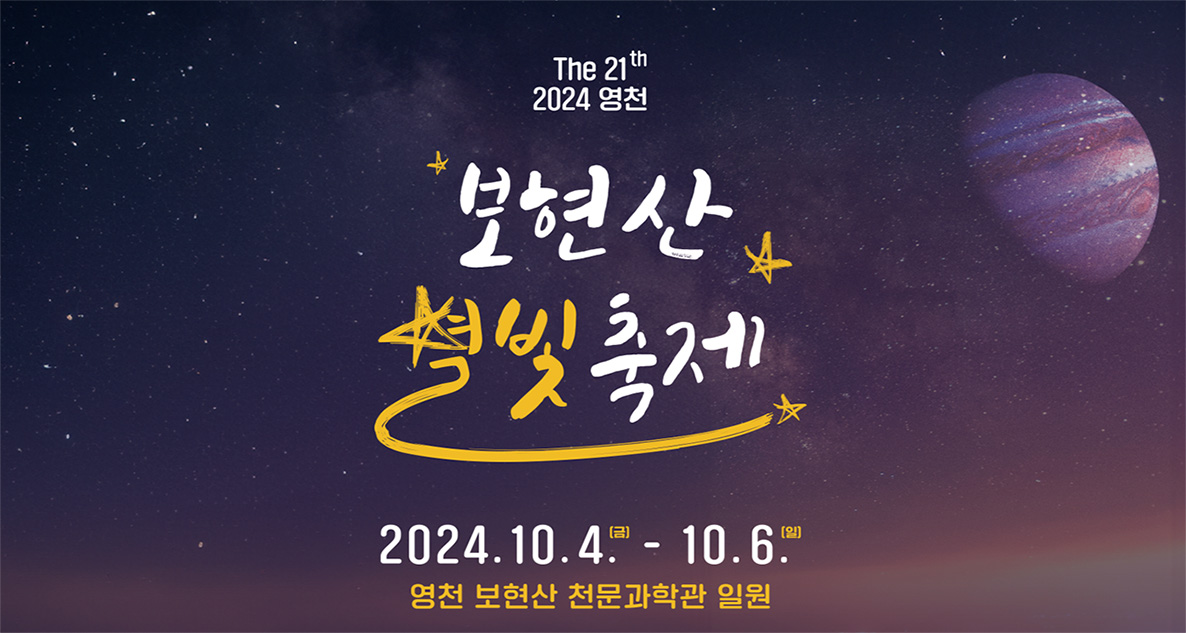 사진 출처 영천보현산별빛홈페이지제21회 영천 보현산 별빛축제가 10월 4일부터 6일까지 경북 영천 보현산 천문과학관 일대에서 열립니다. 영천시에 따르면 제21회 영천 보현산 별빛축제는 '별을 담다, 거대한 목성을 품다'라는 슬로건으로 주제관이 운영되고, AR(증강현실) 프로그램, 별자리 강연, 어린이 도전 골든별 같...