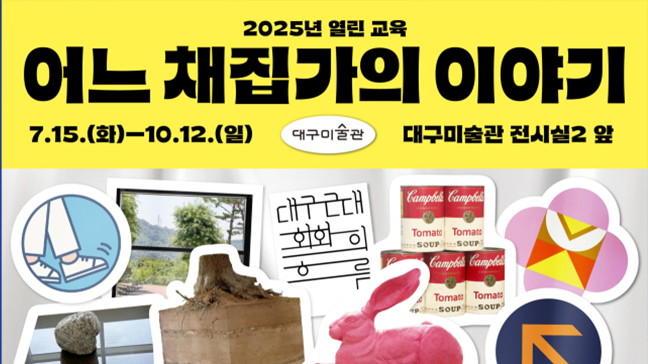사진 제공 대구미술관대구미술관이 여름방학을 맞아 어린이와 가족을 위한 프로그램을 운영합니다. 어린이와 가족 대상 전시 해설 프로그램은 오는 7월 23일부터 8월 13일까지 매주 수요일 오전 10시와 정오에 운영합니다. 전시 중인 해외교류전 '션 스컬리: 수평과 수직'의 해설을 어린이의 시각에서, 어린이의 언어로 소...
