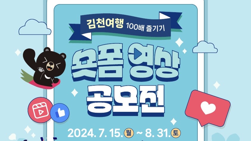 사진 제공 김천시경북 김천시가 7월 15일부터 8월 31일까지 '숏폼 영상 공모전'을 엽니다.지난 4월과 6월에 각각 문을 연 김천 사계절 썰매장과 추풍령 테마파크 중 1곳을 필수 코스로 포함해 김천으로 여행 가고 싶은 짧은 영상을 만들면 됩니다.김천시는 28개 작품을 뽑아 총상금 1천만 원을 지급할 계획이라고 밝혔습니...
