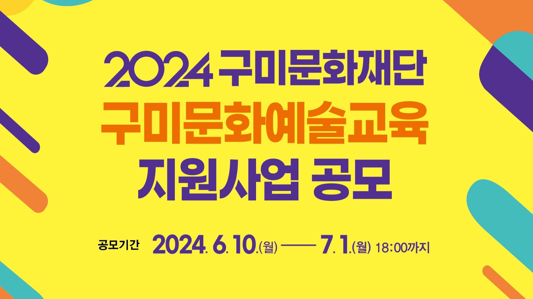 구미문화재단이 '2024 예술 지원사업'을 공모합니다.공모 기간은 7월 1일까지로 구미 지역 예술인과 단체를 대상으로 '예술창작 지원사업'과 '문화예술교육 지원사업'을 공모합니다.'예술창작 지원사업'은 문학, 시각, 공연 분야 전문 예술인과 단체의 창작 활동을 지원하는 것으로 지원 규모는 총 2억 원입니다.'문화예술...