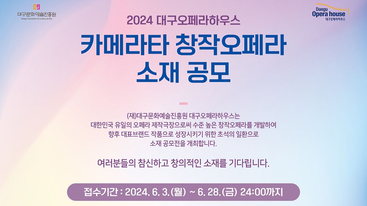 사진 제공 대구오페라하우스대구오페라하우스는 창작오페라 소재를 공모합니다.6월 3일부터 28일까지 계속하는 공모전은 대중 친화적이면서 참신한 소재를 가진 두 건을 선정합니다.선정한 소재는 창작오페라 제작과 공연을 위한 작곡과 대본 집필에 활용합니다.대구오페라하우스는 이육사를 소재로 한 순수 창작오페라를 ...