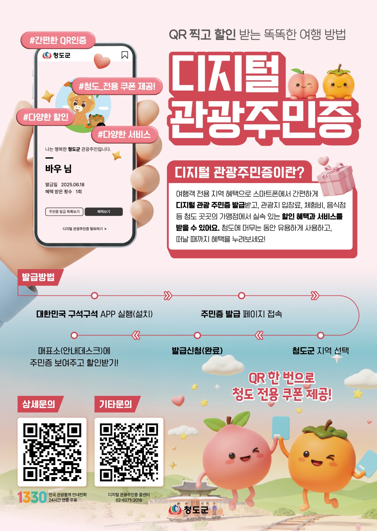 경북 청도군, 디지털 관광 주민증 받은 관광객에 할인 혜택