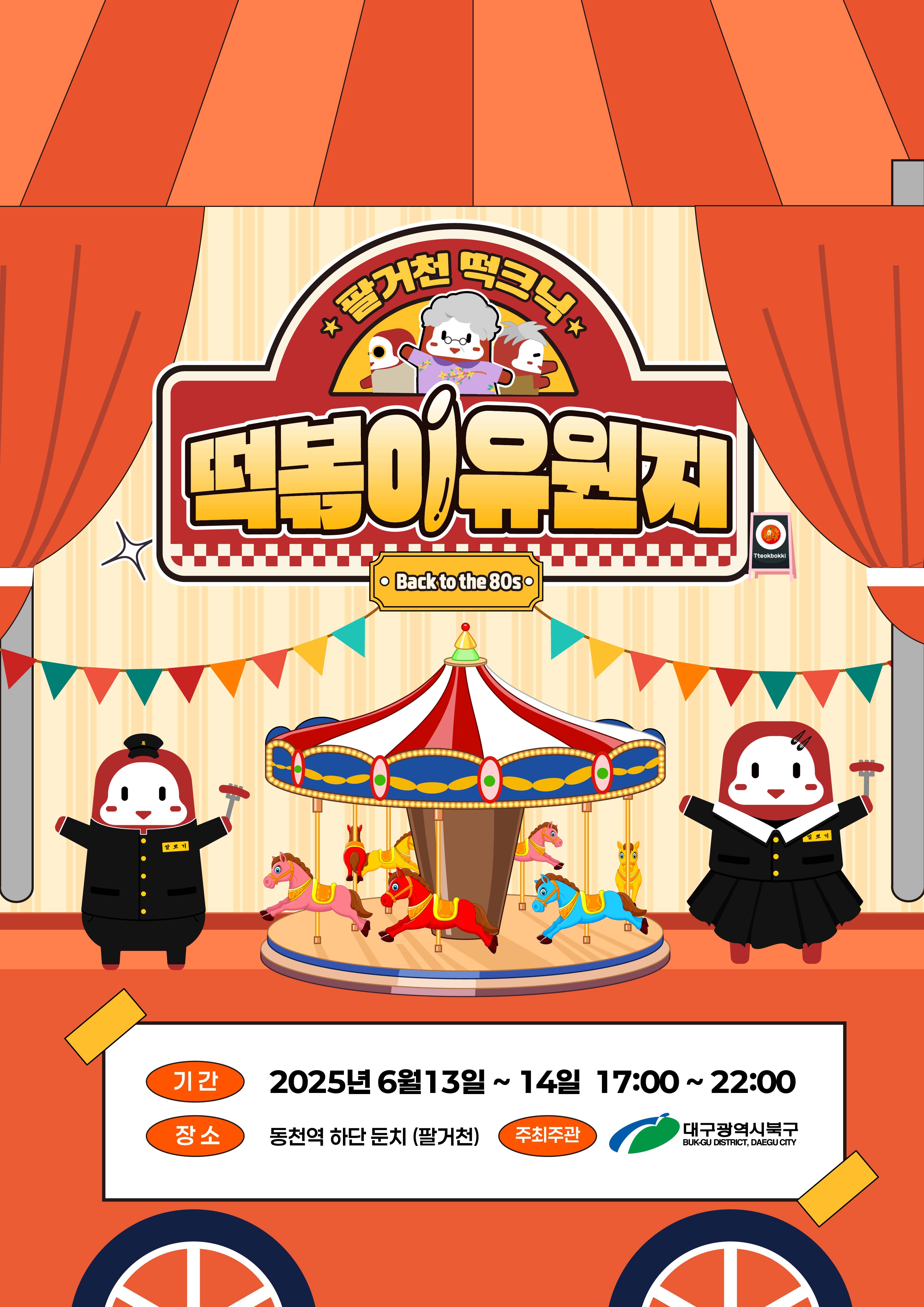 사진 제공 대구 북구6월 13일부터 이틀간 대구 동천역 아래 팔거천 둔치에서 '2025년 팔거천 떡크닉 행사'가 열립니다.떡볶이 유원지라는 주제로 열리는 이번 행사에는 떡볶이와 맥주 등 다양한 먹거리를 즐길 수 있습니다. 무소음 댄스파티와 미혼 남녀를 대상으로 한 단체 소개팅도 열립니다. 행사 참여자들에게는 인근 ...