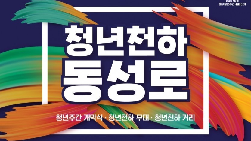 사진 제공 대구시'2023 대구 청년 주간' 행사가 10월 27일부터 사흘간 동성로 일대에서 열립니다. 2023년 9번째 열리는 대구 청년 주간은 '청년 천하 동성로'를 슬로건으로 지역 예술인 무대공연, 청년 가요제, 대구와 광주지역 청년 단체 간 교류 모임 등으로 꾸며집니다. 유명 인사 초청 토크쇼도 마련돼 세대 간 소통 창...