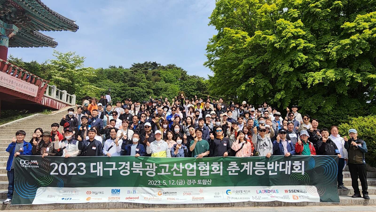 대구경북광고산업협회(회장 최종태)는 5월 12일, 경주 토함산에서 20개 회원사 소속 임직원과 유관기관 관계자 등 150여명이 참석한 가운데『2023 대구경북광고산업협회 춘계등반대회』를 개최했습니다. 이날 행사는 코로나 19로 한동안 가지지 못했던 지역 광고업 종사자들의 친목 교류와 상호 화합의 장을 위해 마련됐습...