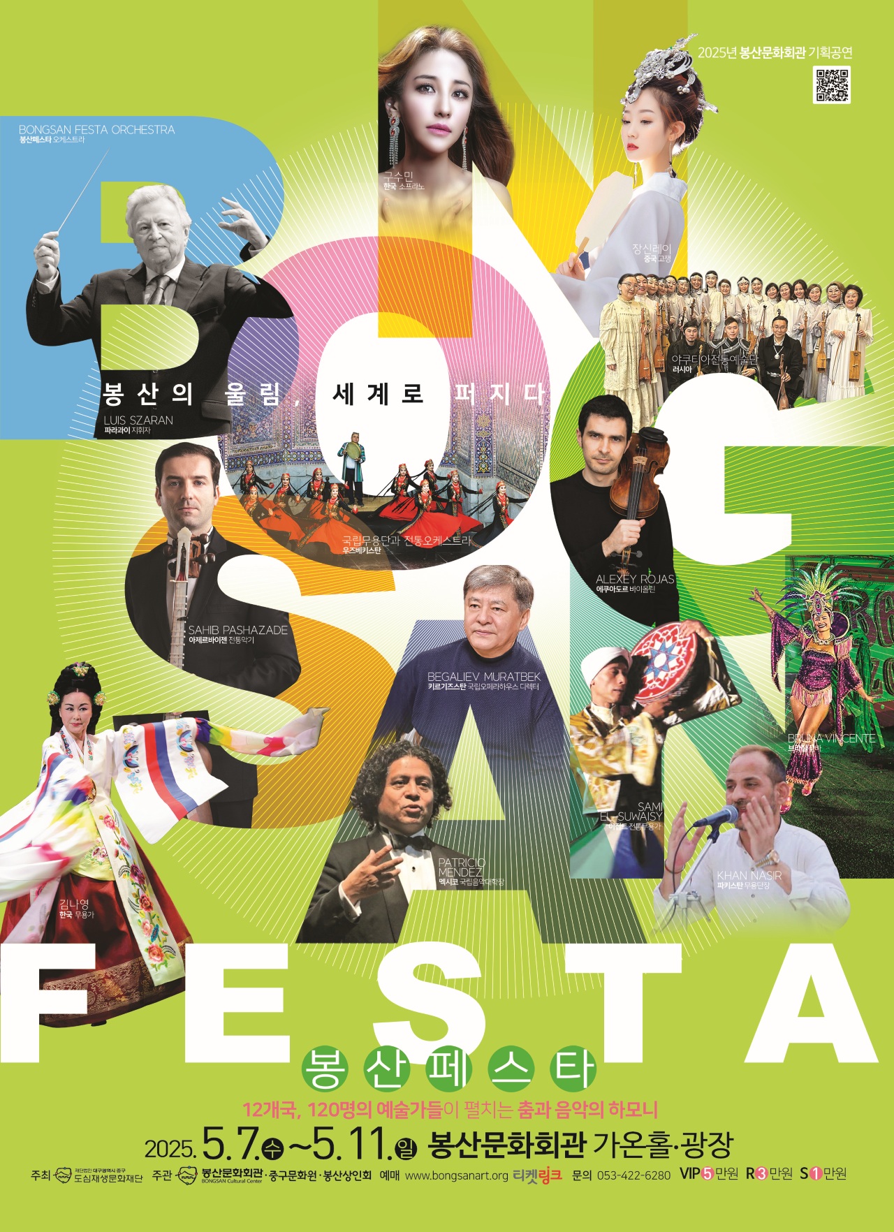 봉산페스타5월 7일부터 11일까지 대구시 중구 봉산문화회관 주변에서 국제 예술축제가 열립니다. '봉산 페스타'에는 12개국에서 온 아티스트 120명이 참여해 춤과 음악으로 하나 되는 국제 예술축제를 엽니다. 이번 '2025 봉산 페스타'는 '예술의 연대'를 주제로 오스트리아와 멕시코 국립음대 학장, 아제르바이잔과 이집트...