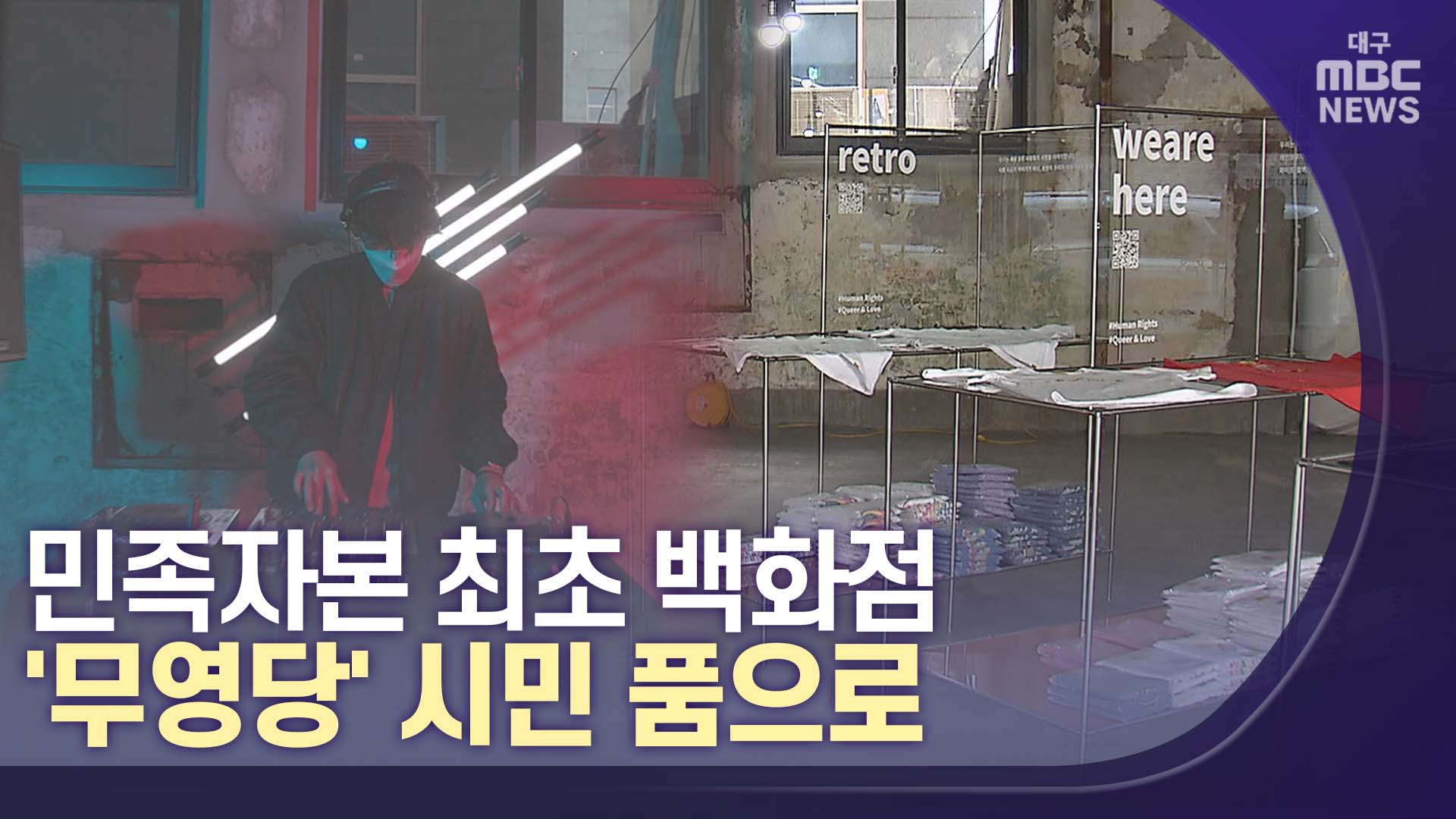 ◀앵커▶지난 1937년 민족자본으로 세워진 대구지역 최초의 백화점 '무영당'을 아십니까?일제강점기의 건축 및 역사적 가치 등을 고스란히 품고 있는 이곳 무영당이 시민을 위한 복합 문화 공간으로 재탄생합니다.양관희 기자입니다.◀양관희 기자▶지난 1937년 평양의 상인이던 이근무가 세운 '무영당'입니다. 외세의 힘이 아...