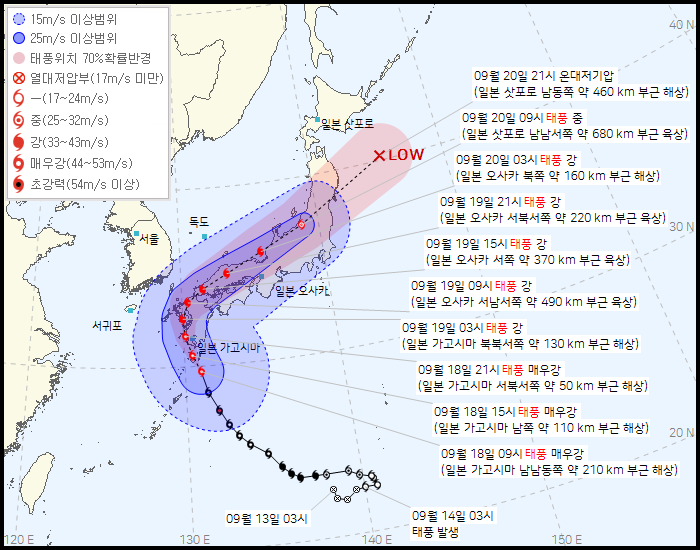 태풍 난마돌 영향… 9월 18,19일 경북 동해안 많은 비와 강한 바람