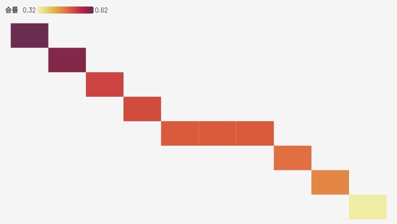 A Flourish heatmap이번 시즌 부산에서 단 1승도 없었던 삼성라이온즈가 3, 4, 5선발로 치렀던 주말 3연전에서 2승 1무로 기대 이상의 성과를 거둬, 순위 싸움에 희망을 살렸습니다.지난주, KIA 타이거즈와 홈에서 펼쳤던 주중 3연전에서 삼성은 우천 취소가 없었던 것이 아쉬울 정도로 좋지 못한 모습을 보입니다. 3연전 ...