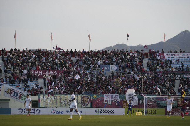 승강플레이오프 2차전에서 크게 진 김천상무가 승격 첫 시즌 다시 강등당하는 아쉬움을 맛봤습니다.1차전에서 한 점차 패배로 승리가 절실했던 김천상무는 10월 29일 오후 김천종합운동장에서 펼쳐진 대전하나시티즌과의 시즌 마지막 홈 경기 승강PO 2차전에서 0대 4로 지면서 2부리그 강등이 확정됐습니다.2골 차 이상 승...