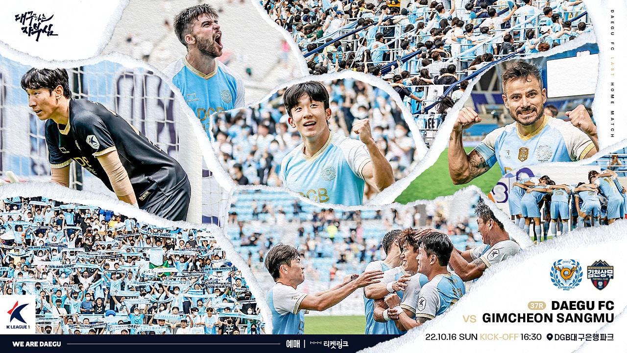 시즌 홈 최종전을 치르는 대구FC가 그라운드 오픈 등 홈 팬들을 위한 다양한 이벤트를 진행합니다. 리그 11위인 김천상무를 상대로 10월 16일 오후 4시 반 DGB대구은행파크에서 하나원큐 K리그1 2022 37라운드 홈경기를 치르는 대구는 무승부만 거둬도 1부 리그 자력 잔류가 가능한 상황입니다.치열한 생존경쟁을 치르며 잔...