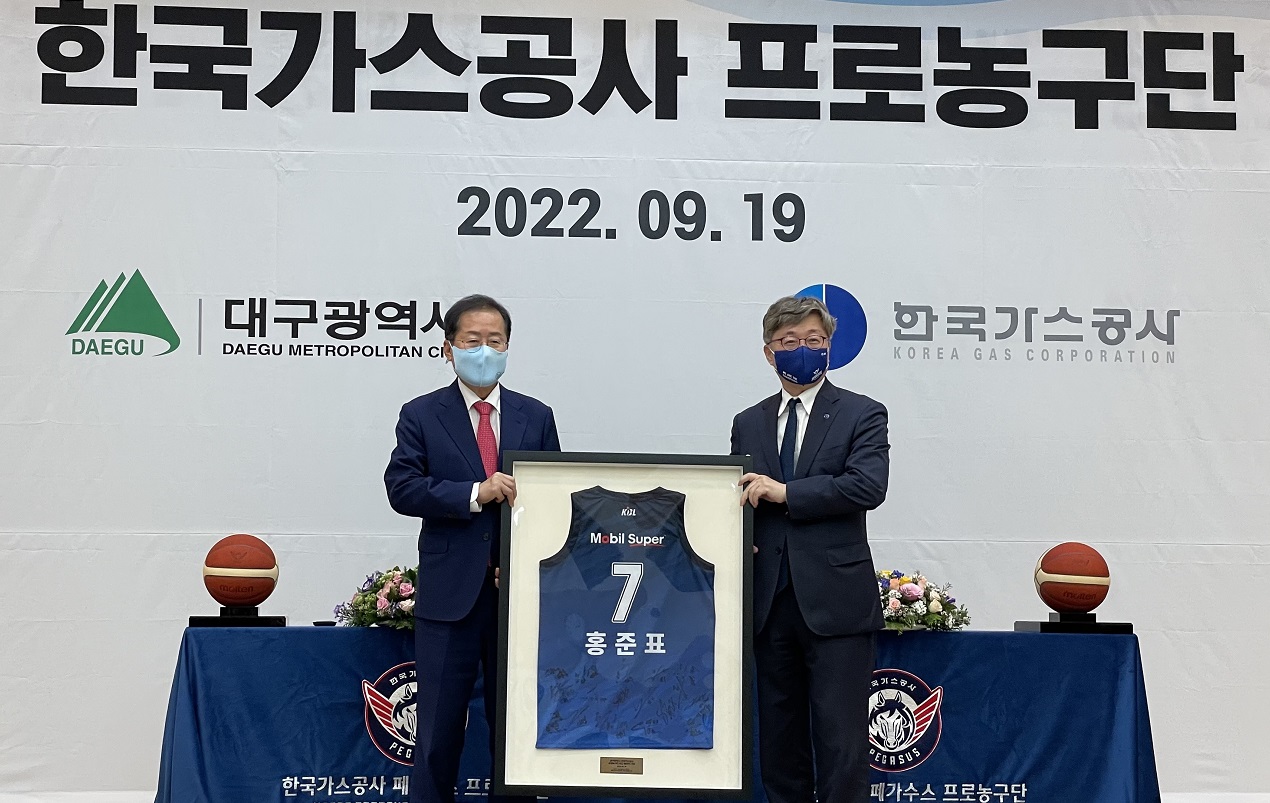 지난 시즌부터 대구체육관을 연고로 프로농구 무대를 누볐던 한국가스공사 페가수스 농구단이 1년이 넘는 시간이 흘러, 9월 19일 대구시와 정식 연고 협약을 체결했는데요.그동안 체육관 신축 문제로 연고 협약이 미뤄져 왔는데 이번에도 해결점을 찾지는 못했지 뭡니까요!협약식을 찾은 홍준표 대구시장은 "프로농구단이 ...