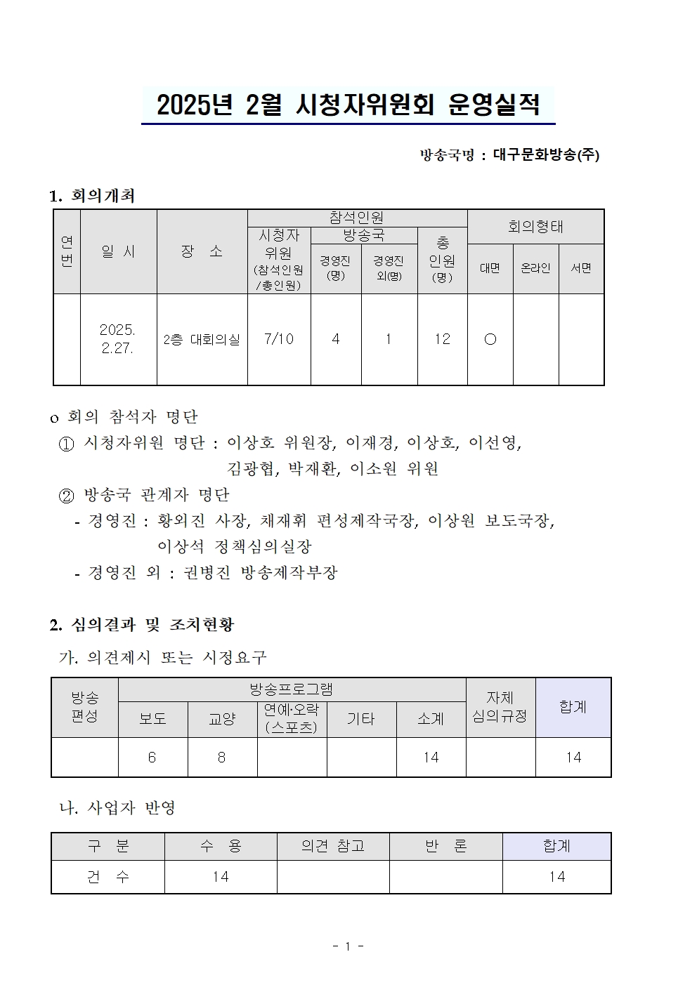 2025년 2월 시청자위원회 운영실적