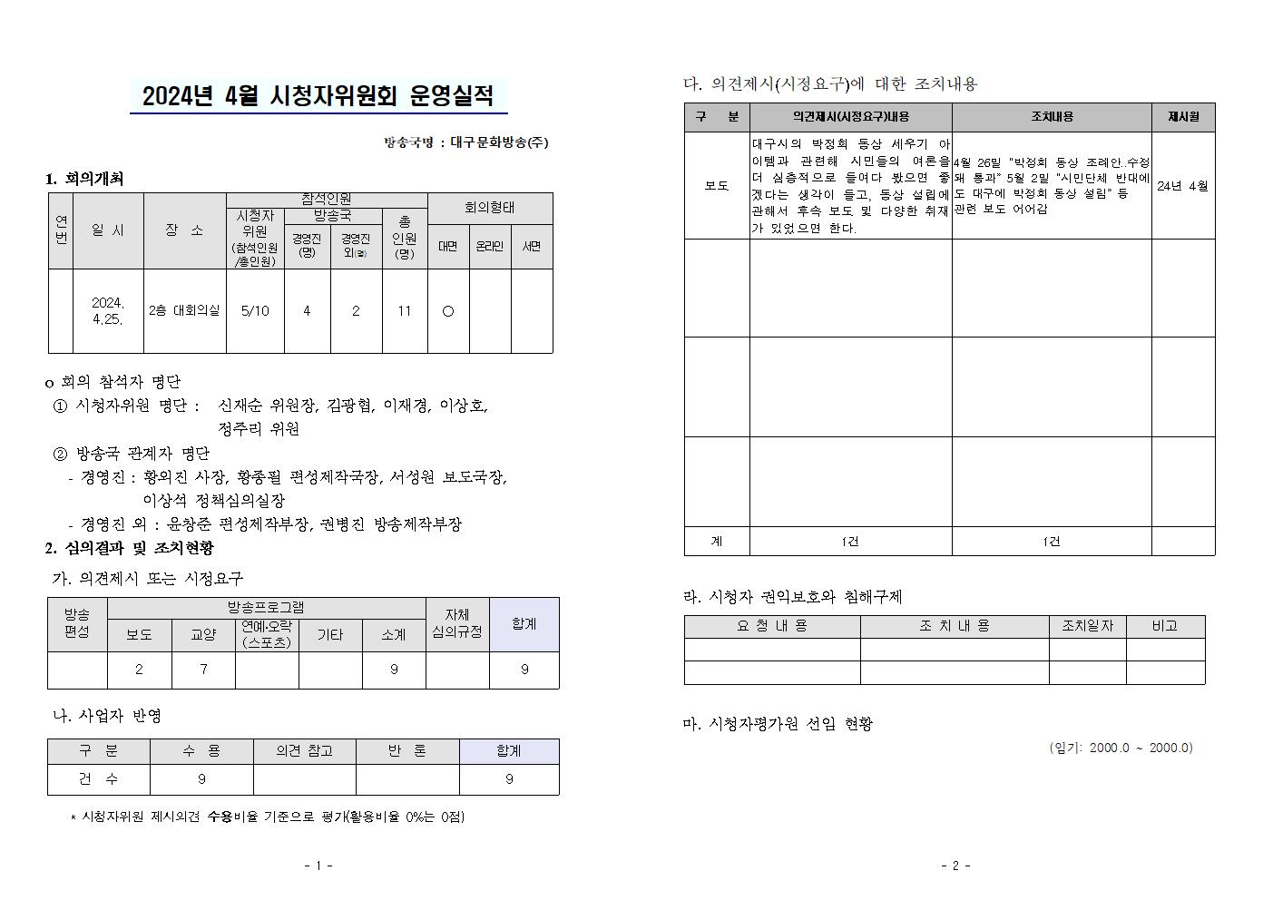 2024년 4월 시청자위원회 운영실적