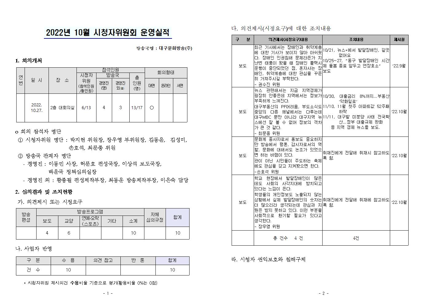 2022년 10월 시청자위원회 운영실적