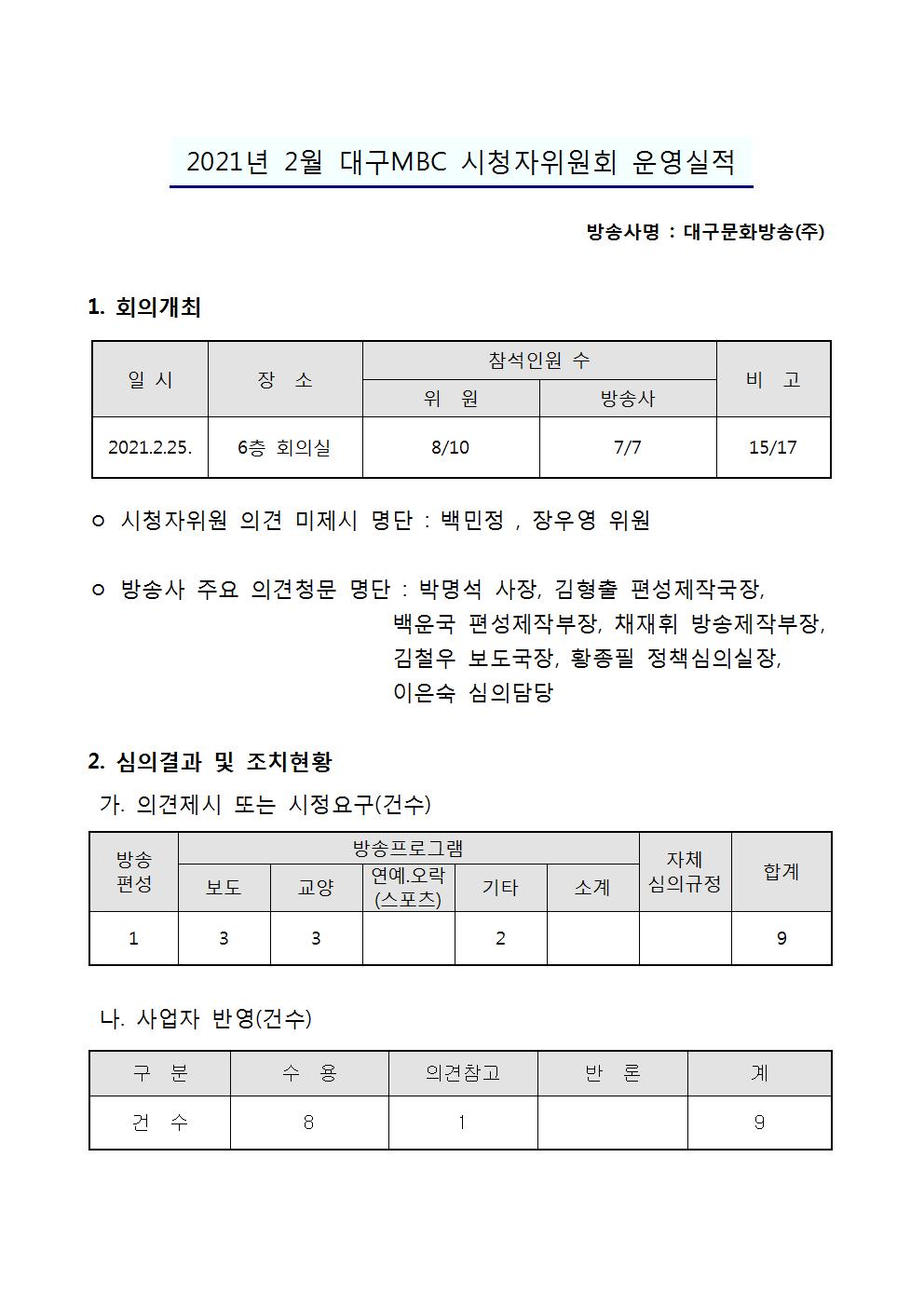 2021년 2월 시청자위원회 운영실적