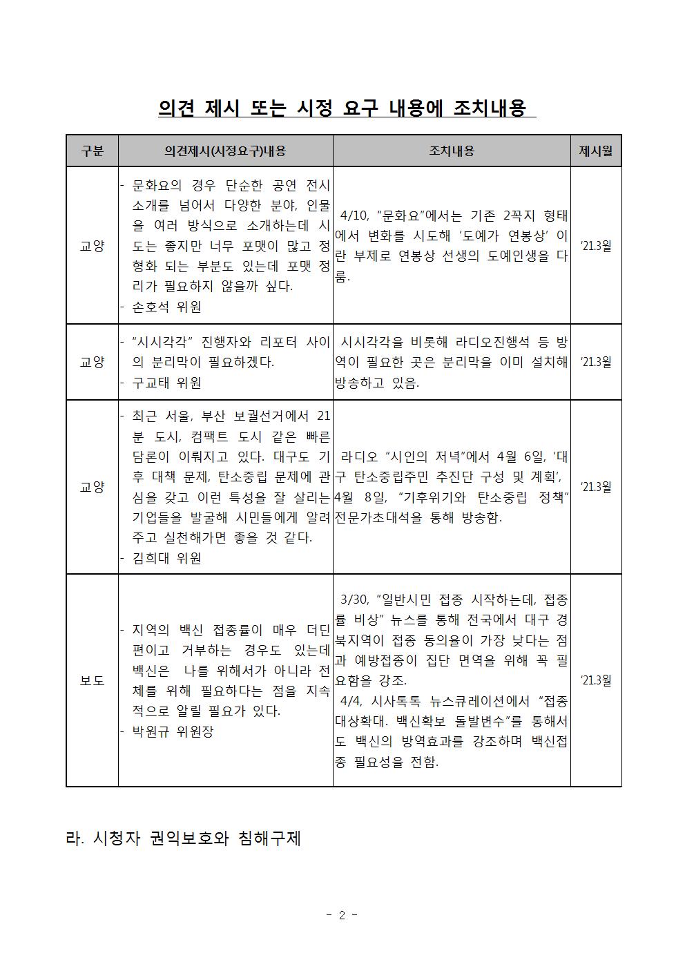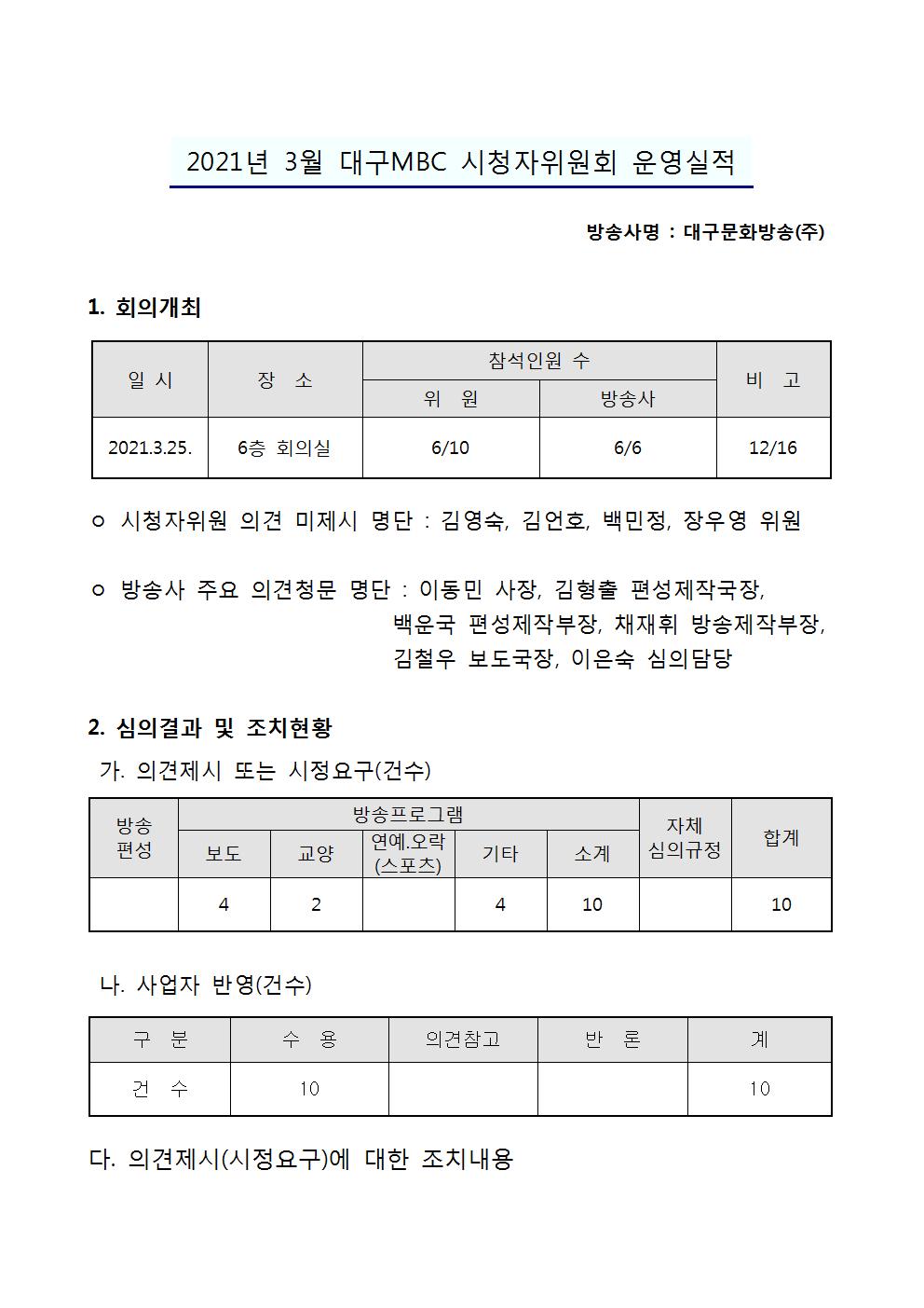 2021년 3월 시청자위원회 운영실적