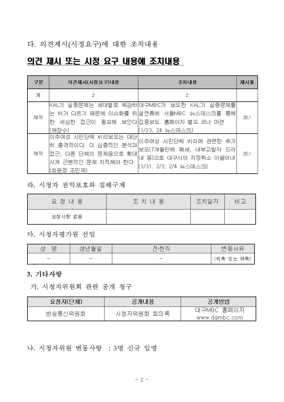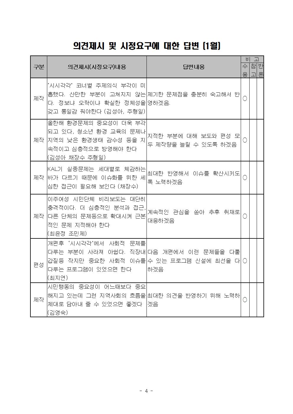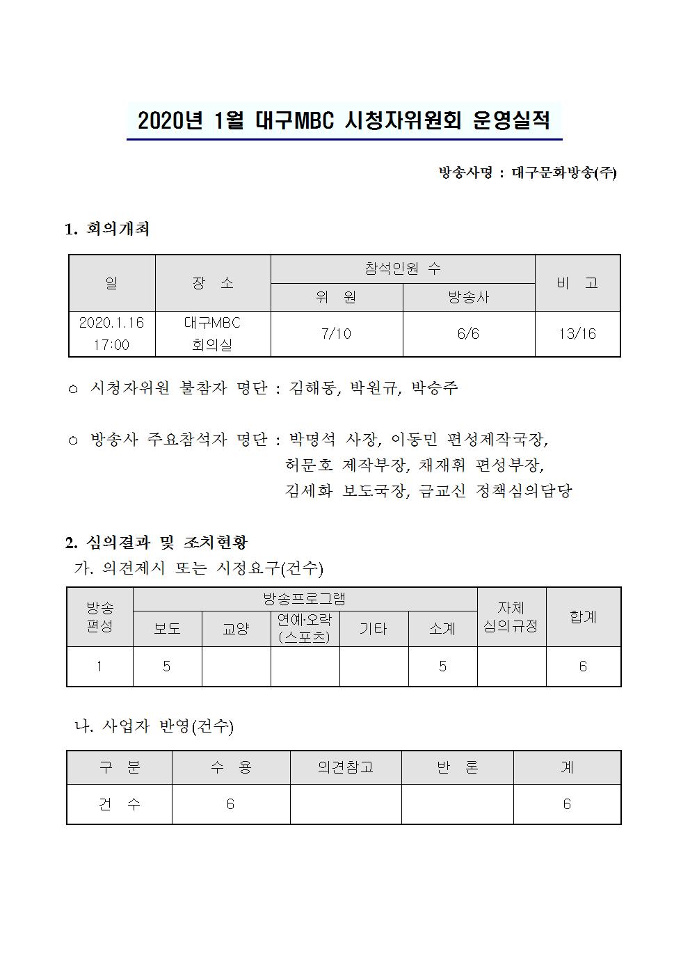 2020년 1월 시청자위원회 운영실적
