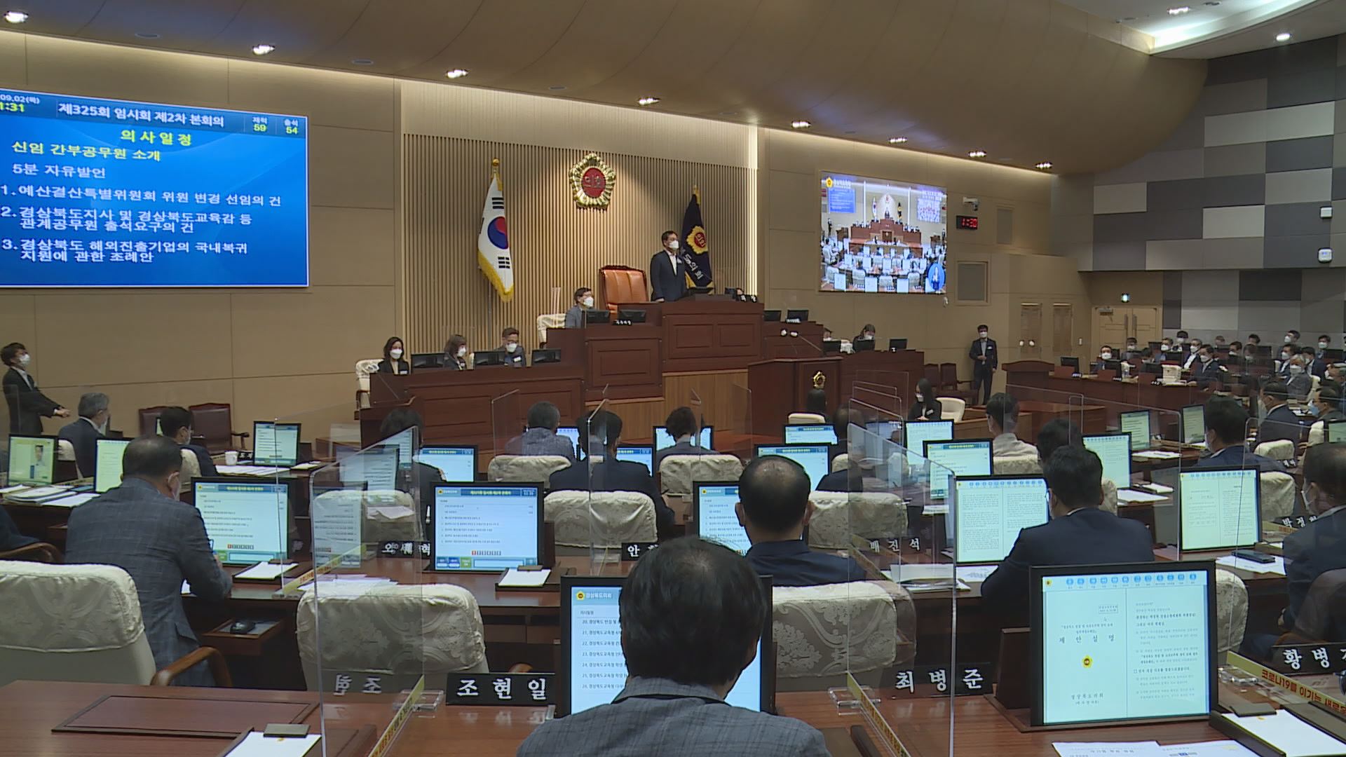 경북도의회는 오늘 임시회 2차 본회의를 열고 통합신공항 공동후보지 유치 신청 당시 대구시와 경상북도가 약속한 군위군의 대구 편입을 위한 안건을 상정했습니다.
