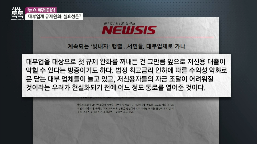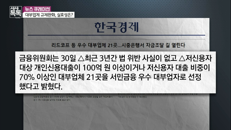 대부업을 대상으로 첫 규제 완화를 꺼내든 건 그만큼 앞으로 저신용대출이 막힐 수 있다는 방증이라는 업계의 판단도 있습니다.