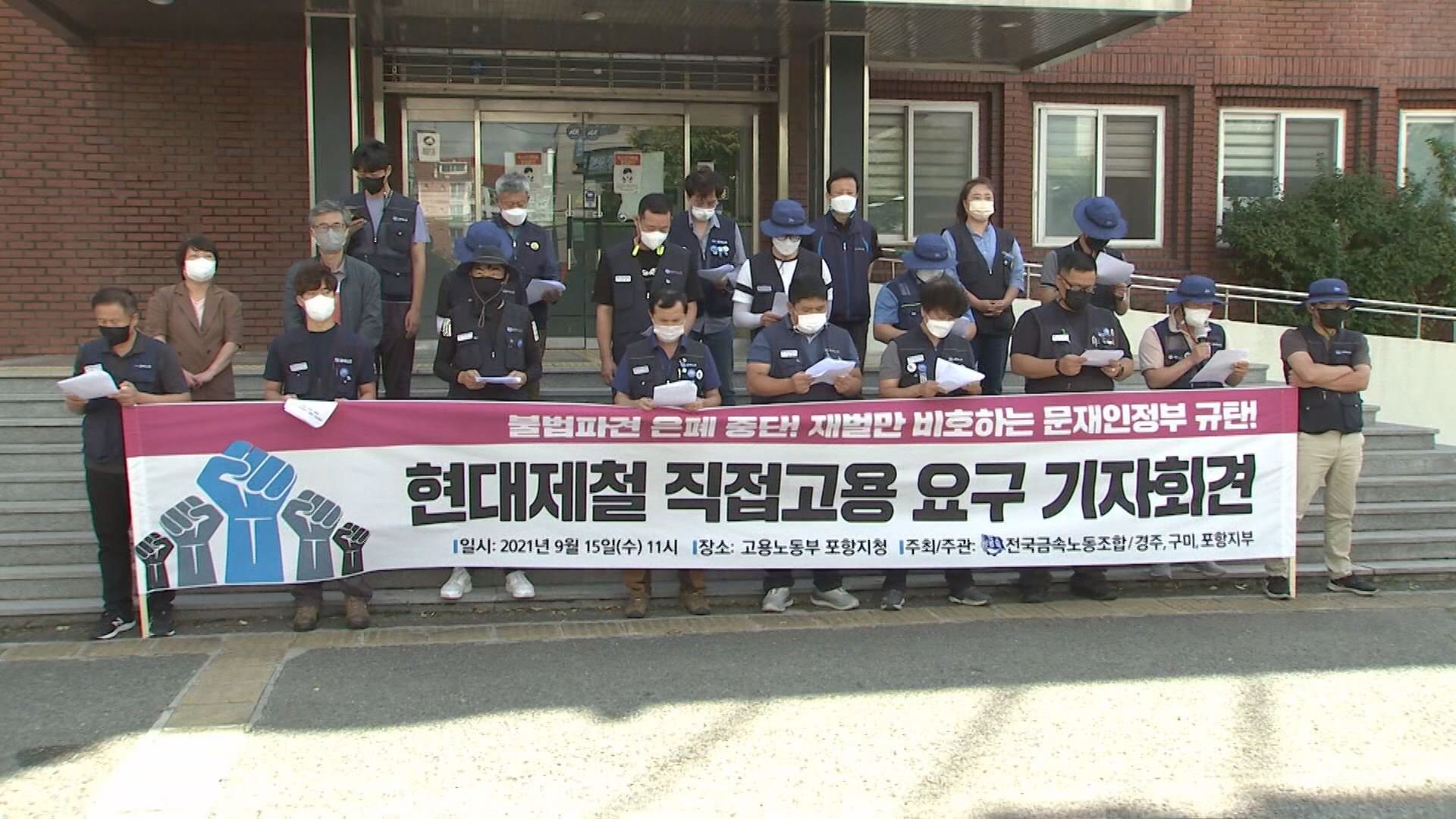 금속노조 포항, 경주, 구미지부는 오늘(15일) 고용노동부 포항지청 앞에서 기자회견을 열고, 불법파견에 대한 정부의 엄중한 단속과 처벌을 촉구했습니다.