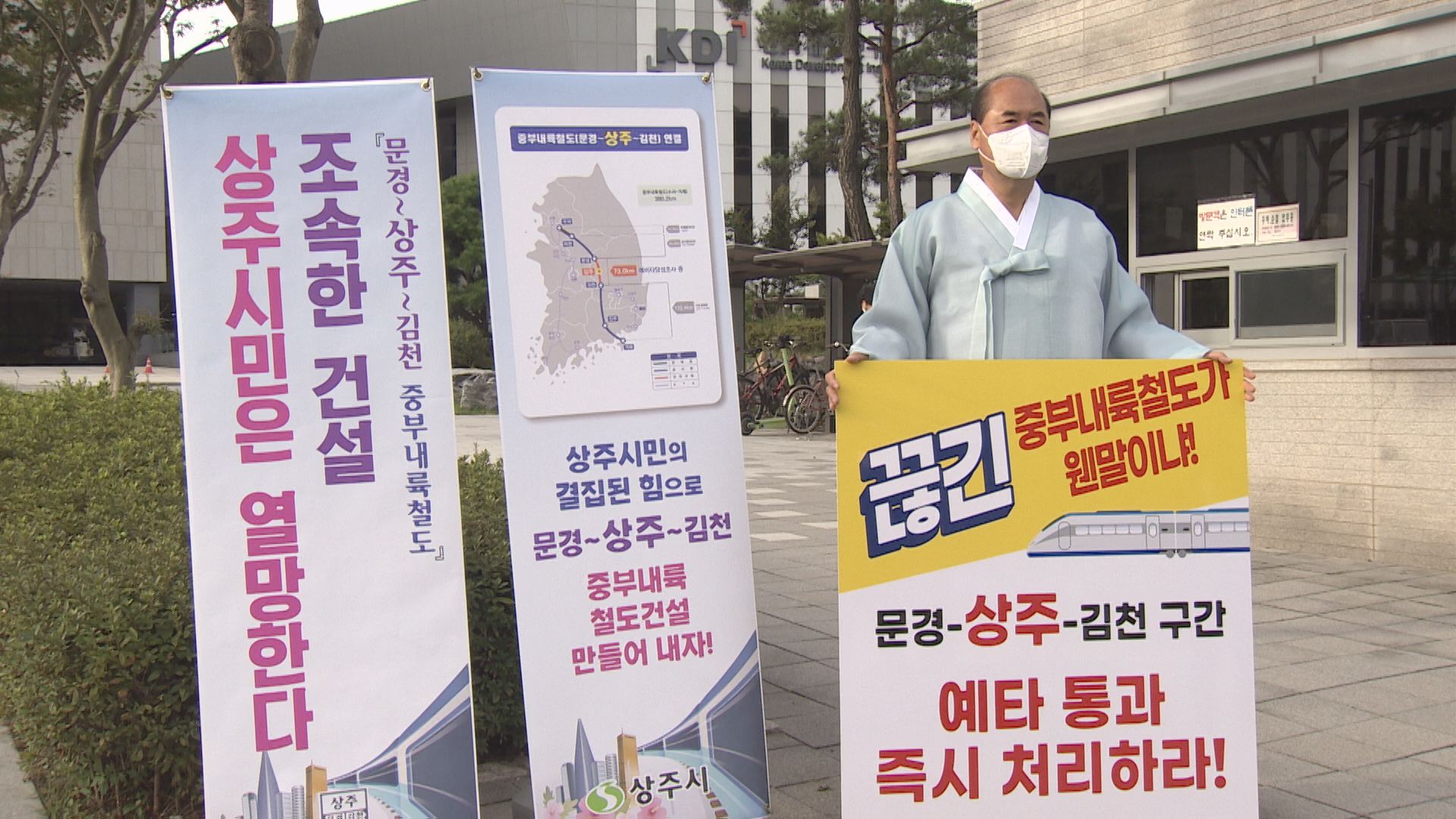 문경과 상주, 김천시 등 3개 지자체가 이달부터 세종시의 한국개발연구원 앞에서 릴레이 1인 시위를 벌이고 있습니다.