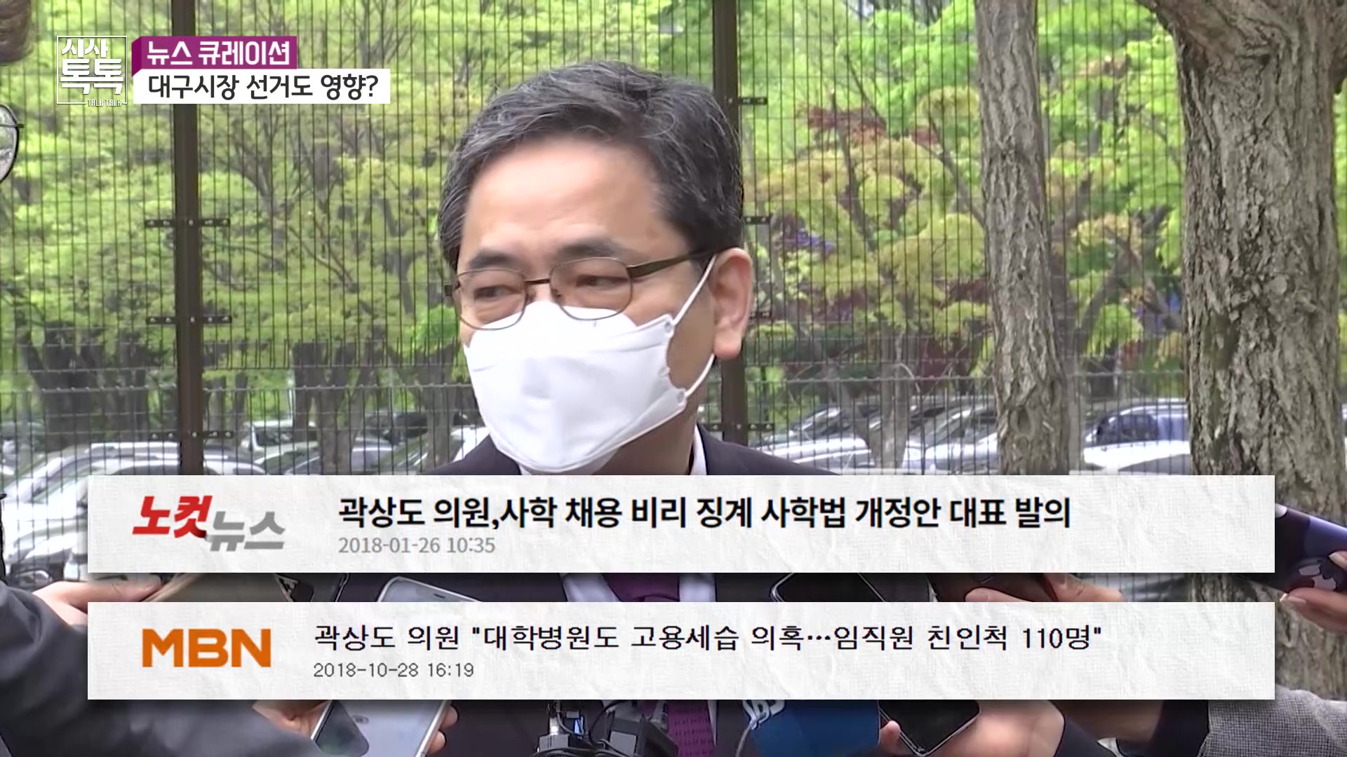 특히나 요즘 아주 민감한 자녀를 둘러싼 특혜의혹 때문입니다. 자신이 아들에게 화천대유를 소개했다고 했는데, 화천대유 대주주 김만배와 곽 의원은 성균관대 동문입니다.