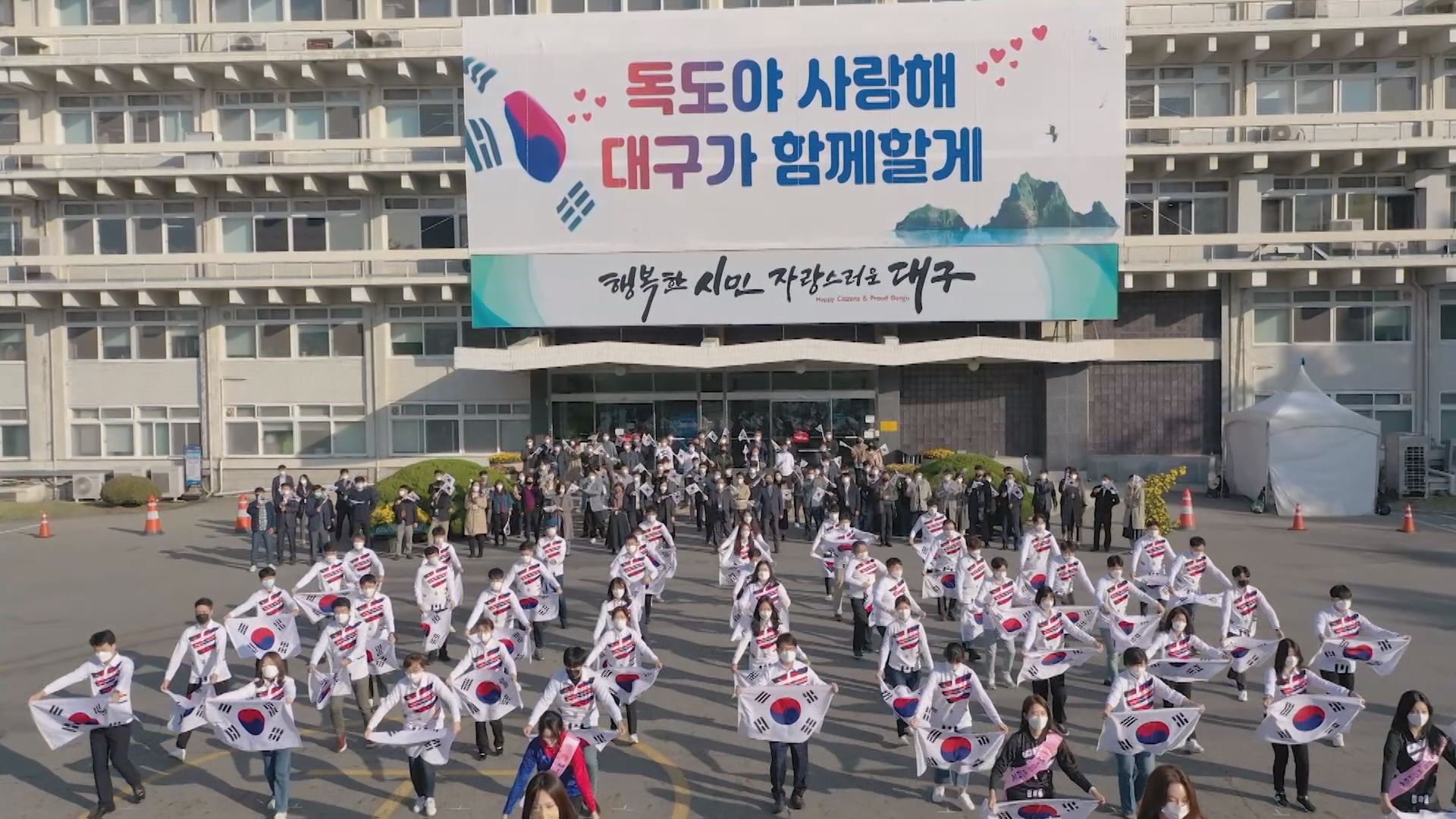 독도의 날을 맞아 대구시장과 직원 등이 대구시청 별관에서 독도사랑 플래시몹을 펼쳤습니다.