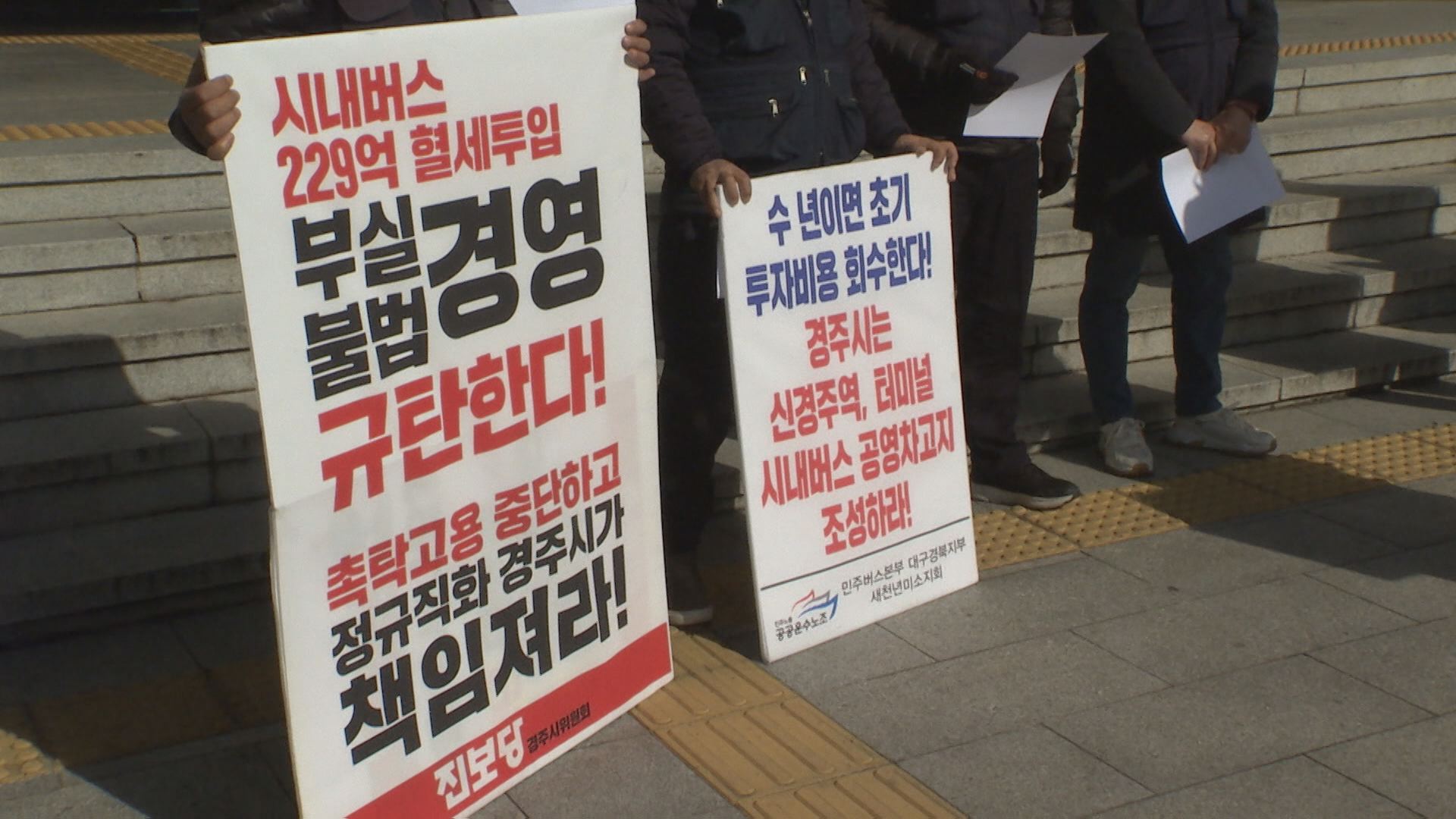 이들은 경주시가 새천년미소에 지난해 코로나 피해 지원금을 포함해 229억 원의 막대한 예산을 지원했지만, 전체 버스 노동자 245명 가운데 60여 명이 촉탁직이라고 주장했습니다.