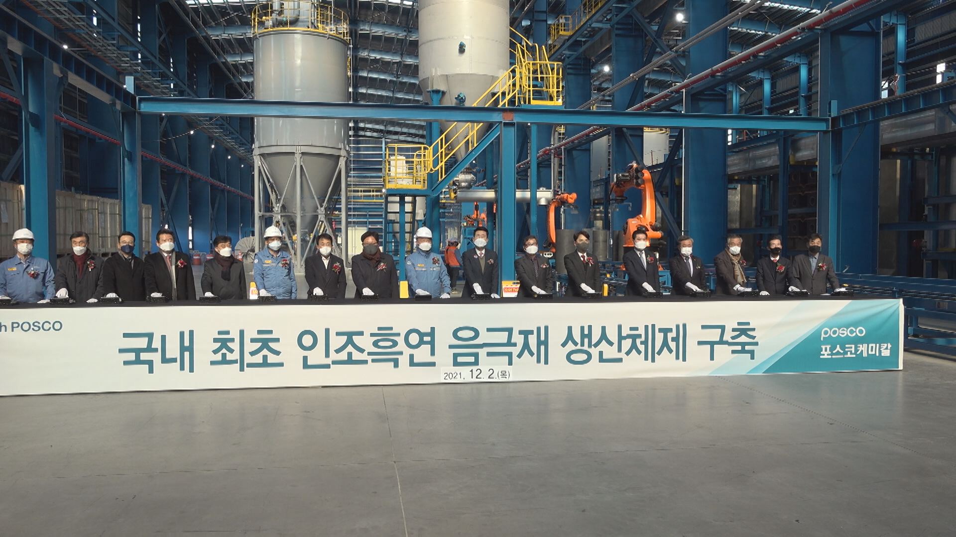 국내에서 처음으로 지어지는 인조 흑연 음극재 공장 준공식이 오늘(2일) 포항 블루밸리 국가산단에서 열렸습니다.