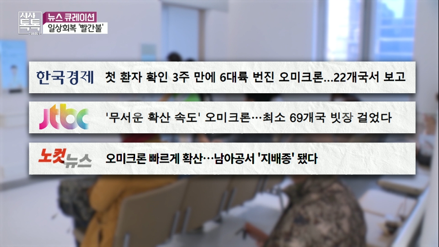 오미크론은 남아공에서 지난달 24일 첫 보고 됐고 이틀 뒤인 26일에 세계보건기구가 우려변이로 지정했는데요. 6주 만에 20여 개국, 6개 대륙에서 나타났습니다.