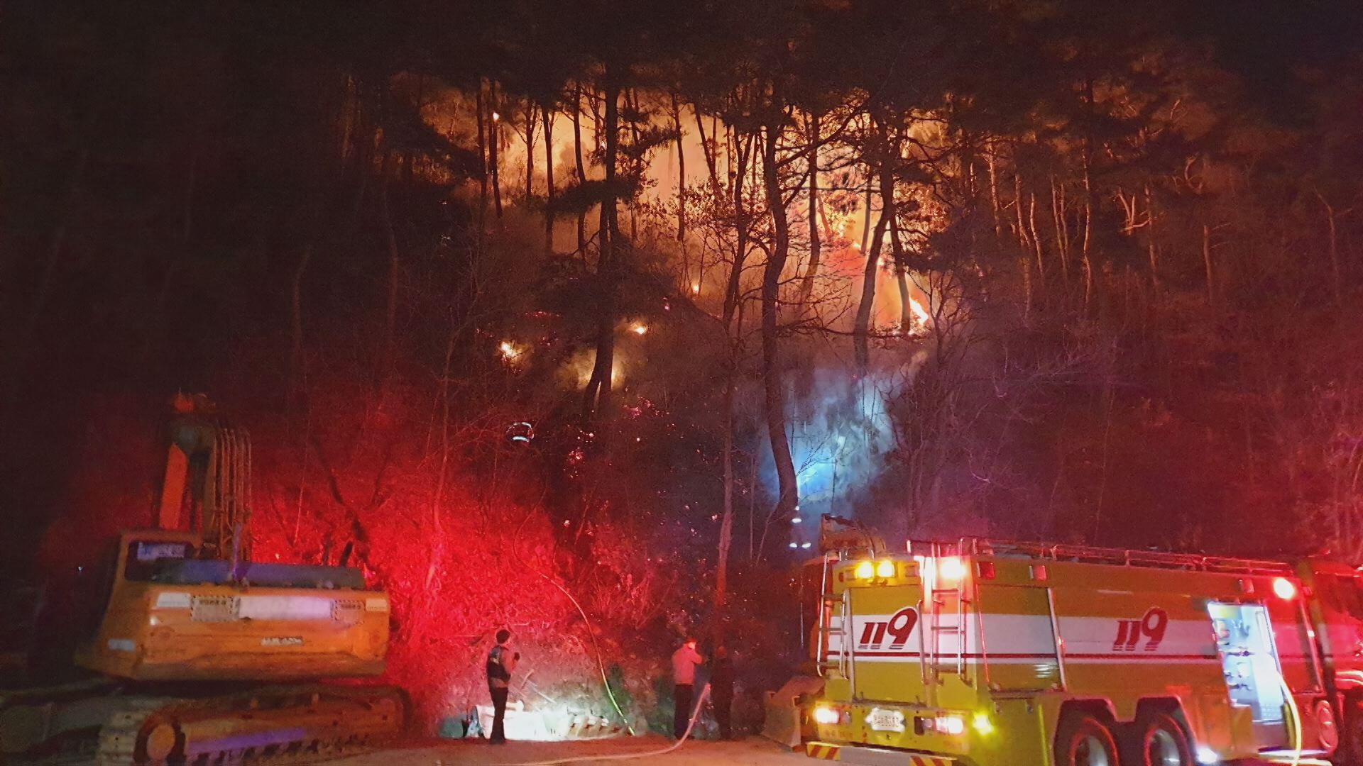 산림 당국은 야산 인근 도로에서 담뱃불로 발생한 불이 산으로 옮겨붙은 것으로 보고, 정확한 화재 원인을 조사하고 있습니다.