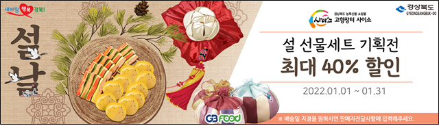 경북 온라인 쇼핑몰인 사이소에서는 지난해(2021년) 역대 최대 매출 달성 기념으로 설 선물세트를 최대 40% 할인 판매하고 대량 구매하면 추가 할인행사도 합니다.