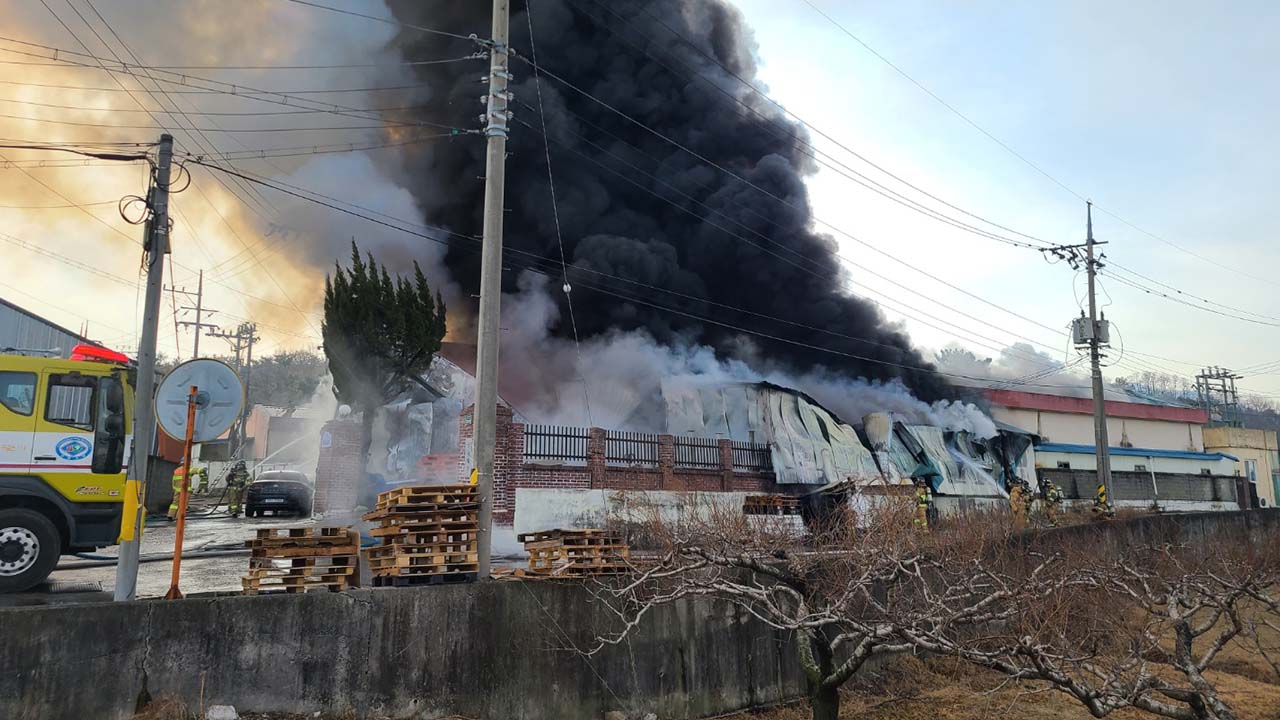 2월 9일 오전 11시 10분쯤 경북 경산시 남산면의 한 섬유공장에서 원인을 알 수 없는 불이 났습니다.